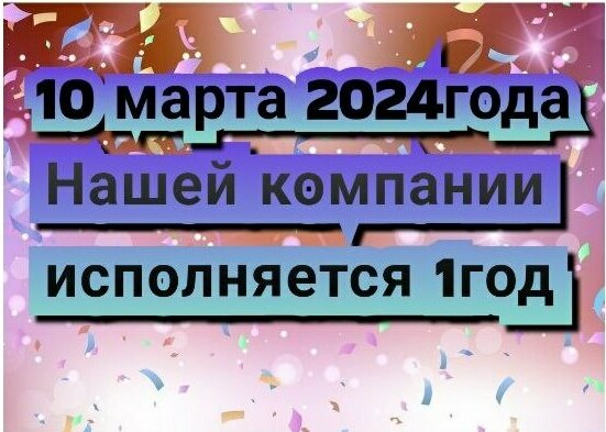 Нашей компании 10 марта 2024года исполняется 1год!!!