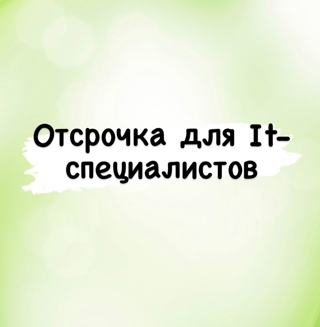 - Сотрудник IT-компаний,в которой более 11 месяцев призывник официально работает в аккредитованной IT-компании или менее 11 месяцев, если он в течение года заключил трудовое соглашение с ИТ-организацией после получения диплом бакалавра, специалиста, магистра, либо после окончания учебы в научном учреждении.